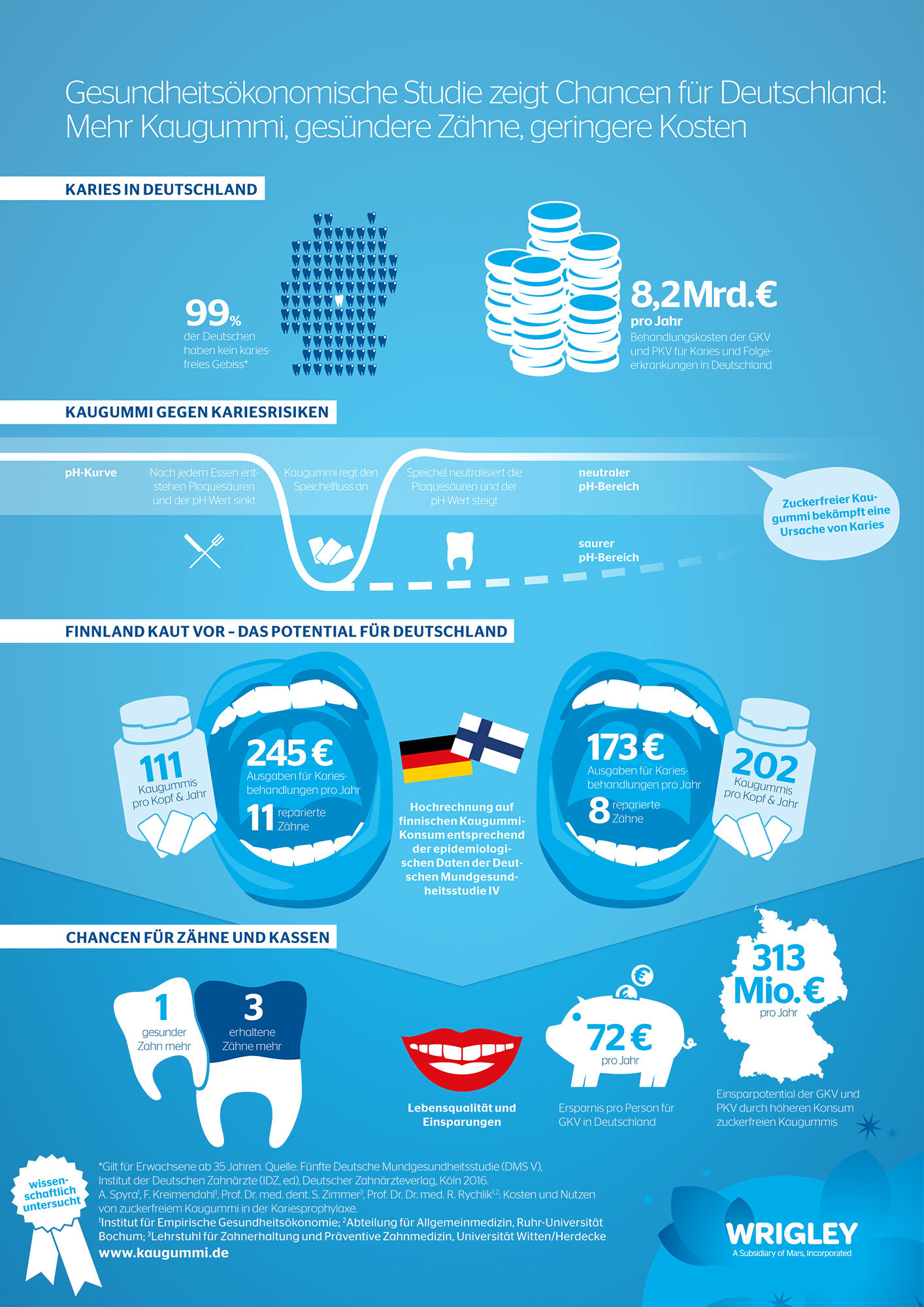 1 Stefan Zimmer, Fabian Kreimendahl, Cornelia Blaich, Reinhard Rychlik: Kariesprävention durch zuckerfreien Kaugummi - ein Kosten-Vergleich auf der Grundlage der DMS V. DOI 10.3238/dzz.2017. Die der Publikation zugrundeliegende Studie wurde von der Wrigley GmbH in Auftrag gegeben und finanziert.